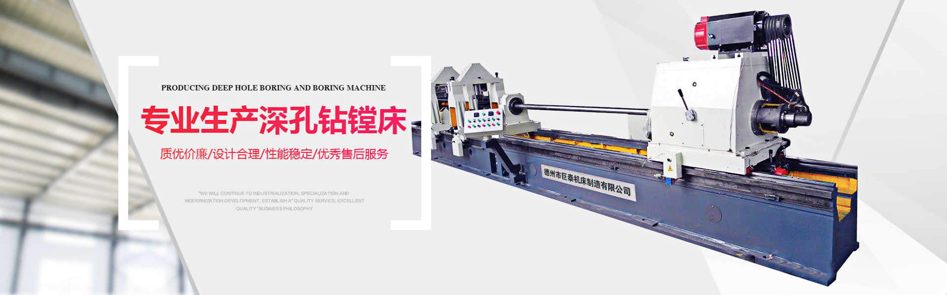 德州市巨泰機床制造有限公司位于具有“九達天衢”、“神京之門”之稱的山東省德州市,是專業生產深孔鉆鏜床的廠家。我廠始建于1989年,擁有固定資產1800萬元,員工120人,其中高級工程師8人,專業技術人員26人,是魯北地區機械行業的骨干力量。 本廠擁有大型機械加工設備4000mm、6000mm、9000mm龍門刨床、1140×8000mm車床、數控鏜床、大型數顯斷面銑、大型滾齒輪、機械加工中心等各類型磨床、車床、鉆床、銑床,八十余臺。 主導產品有:普通類——深孔鉆鏜床(T2116、T2120)、深孔鏜床(T2225、T2235、T2250)、深孔珩磨機(2M2125A、2M2135A)等;數控類——數控深孔鉆鏜床(TK2120、TK2125)、數控深孔鏜床(TK2235、TK2250)。深孔槍鉆(ZK2102、ZK2103)等。深孔加工刀具、輔具有:標準系列——深孔鉆頭、深孔鏜頭 、滾壓頭 、鏜滾組合頭及深孔珩磨頭等 ,并承接非標深孔刀具 、特型孔加工刀具的設計制造業務 ,根據生產需要有單體刀具和復合刀具,產品規格從Φ30mm到Φ1000mm......
